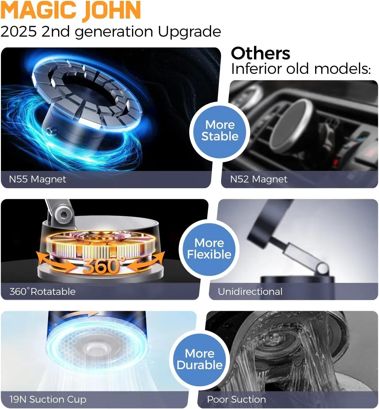 ✅Strong Magnetic Grip– Keeps your phone secure ✅360° Rotatable Design– View from any angle ✅Vacuum Suction Base– Firm hold on smooth surfaces (glass, tiles, mirror, etc.) ✅Foldable & Portable– Pocket-sized, travel-friendly ✅Universal Compatibility– Works with all smartphones ✅Perfect for– Car dashboard, bathroom mirror, kitchen tiles, office desk, gym lockers
